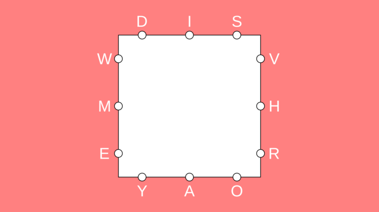The sides for today’s New York Times Letter Boxed are DIS, VHR, YAO, and WME.